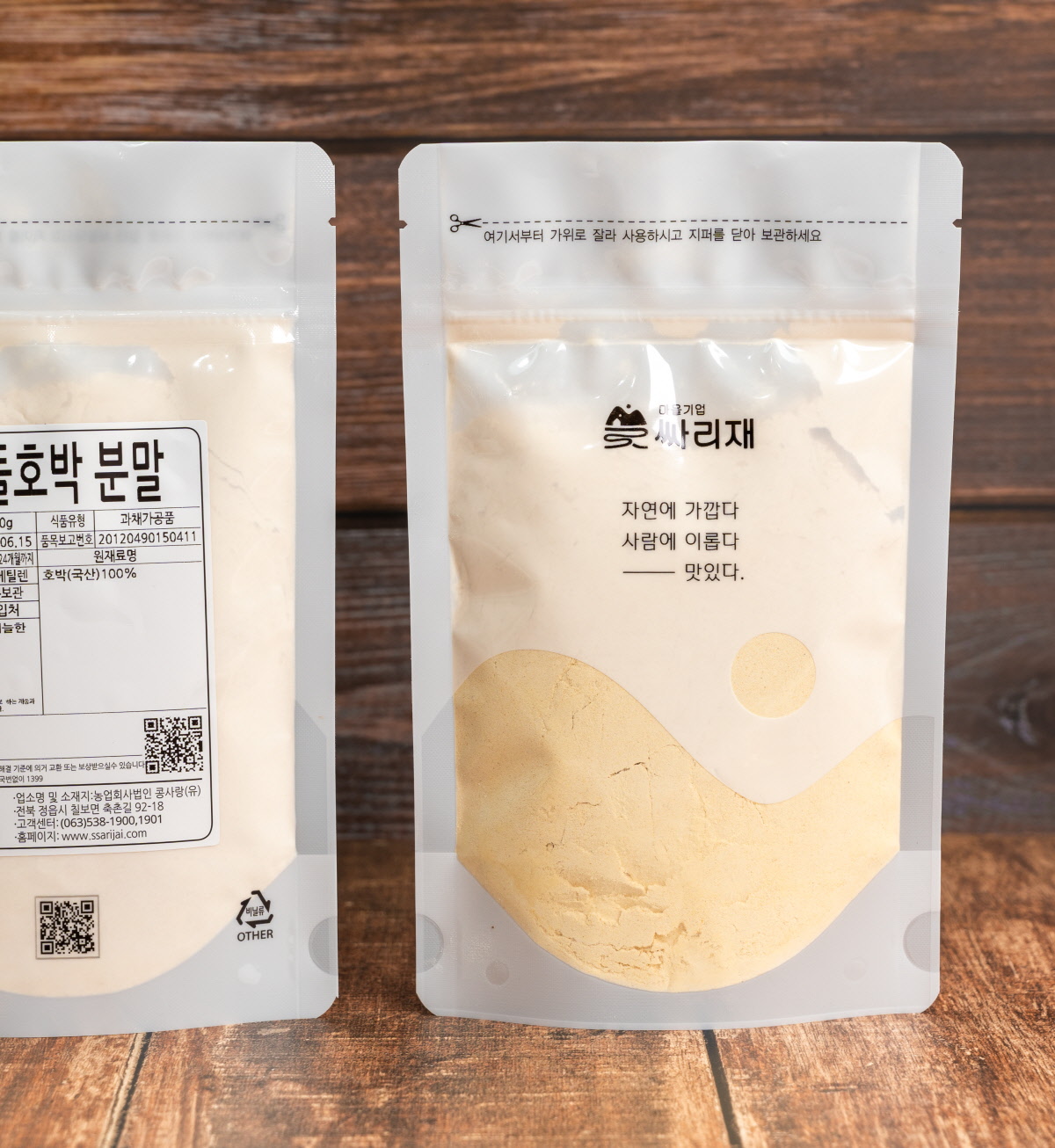 청정지역 싸리재 마을에서 농사지은 맷돌 호박, 일명 늙은 호박으로 곱게 분쇄해 만들었어요. 호박죽 끓일 때, 우유나 두유와 함께 호박 라떼로, 베이킹이나 수제비를 만들 때도 좋은 호박 분말