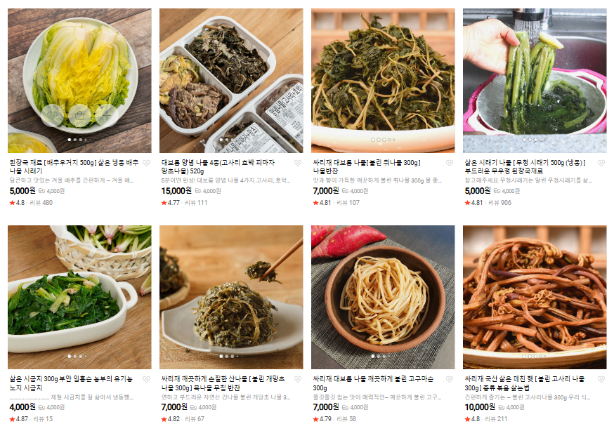 (건나물부터 불린 나물, 양념 나물까지)