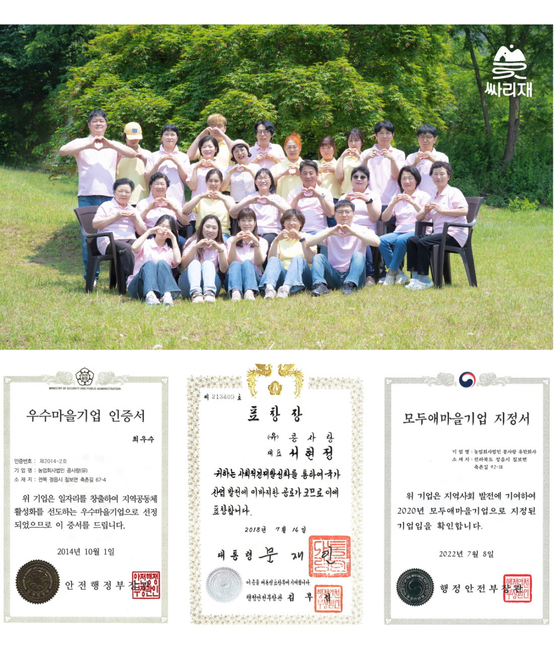 마을기업 싸리재에서 나오는 이익이 함께 생활하는 마을 주민들에게 직접 돌아가기 때문에 더욱 정성껏 만들고 있답니다.