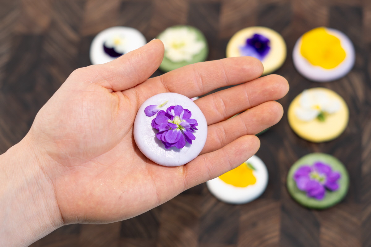 정성으로 키운 식용꽃을 얹어