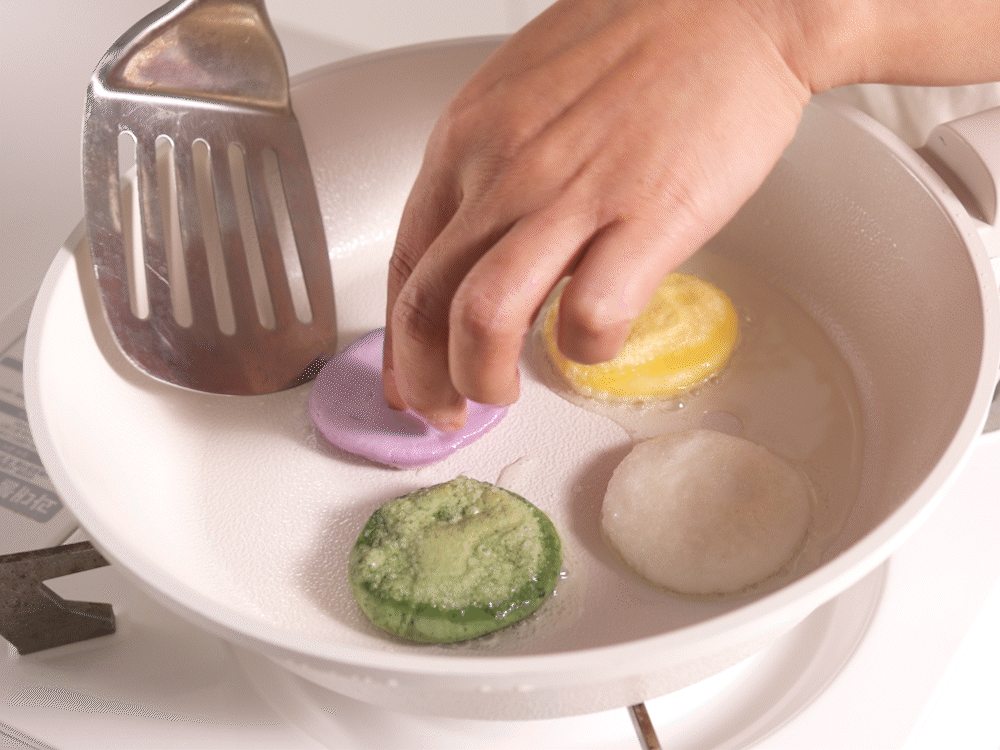 · 반죽은 반드시 약한 불에서 천천히 익혀주세요.
