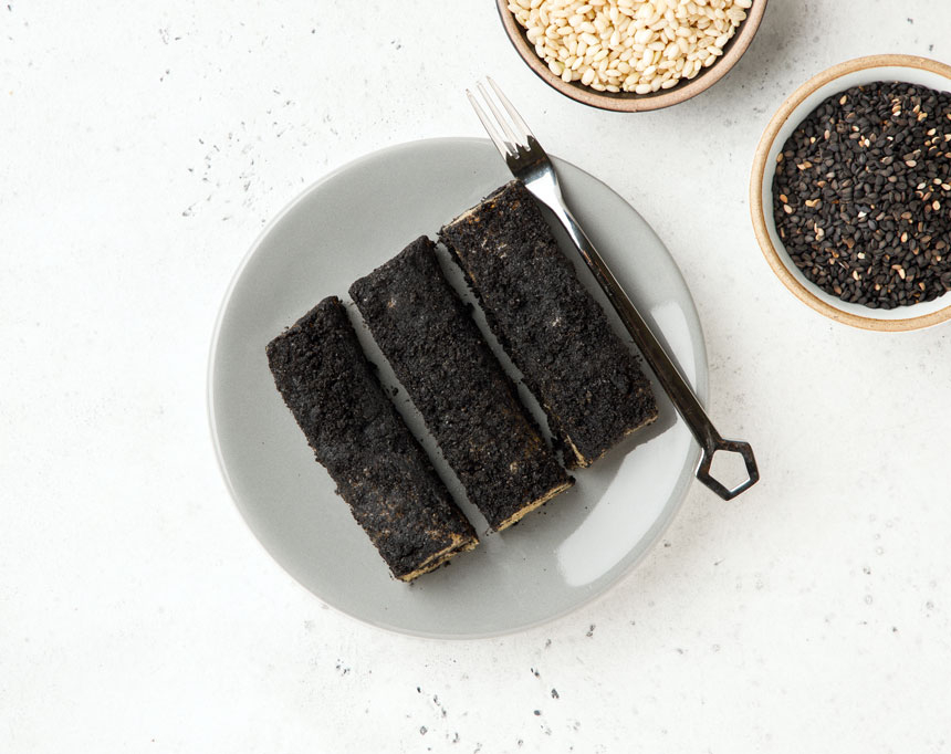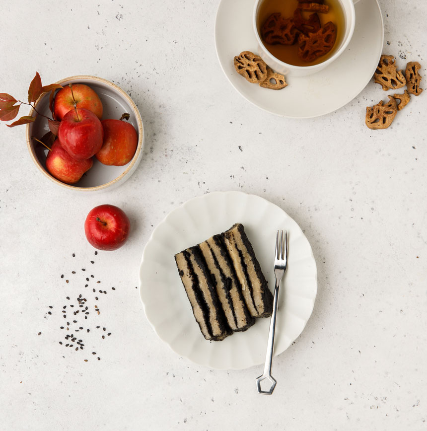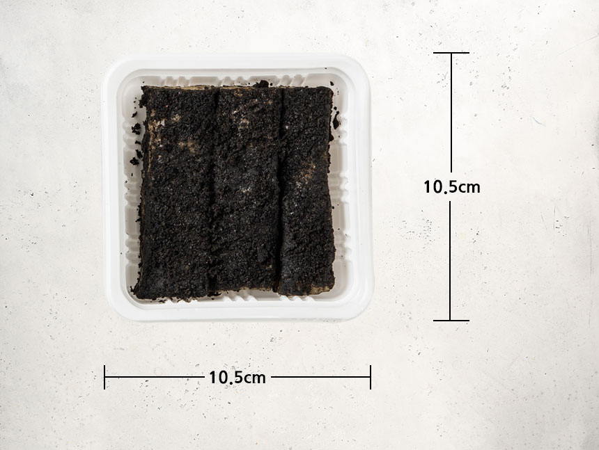 유기농 찹쌀현미에 흑임자깨 고물을 켜켜이 쌓아 만든 흑임자 찰떡입니다.