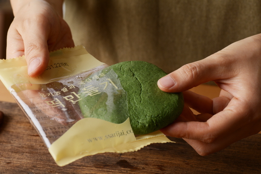 흰반죽 100g 1봉지, 단호박반죽 100g 1봉지, 생쑥반죽 100g 1봉지, 자색고구마반죽 100g 1봉지로 총 4봉지로 소포장합니다.