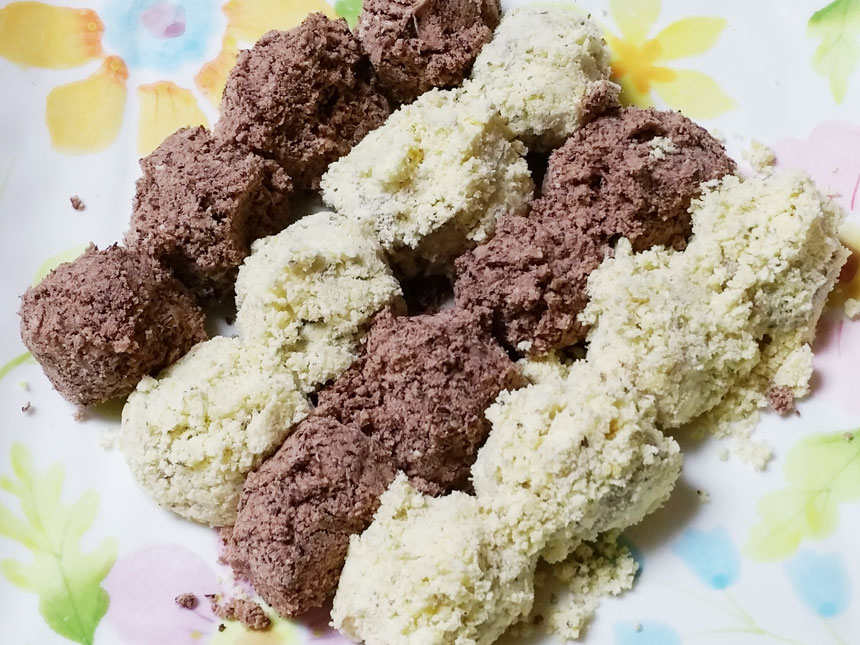 4. 아이들 입맛에 맞는 카스테라나 고소한 깨가루, 콩가루 고물을 입혀주시면 완성됩니다.