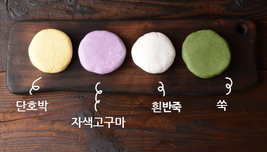 ▶ 천연의 재료로 곱게 색을 낸 반죽이예요.