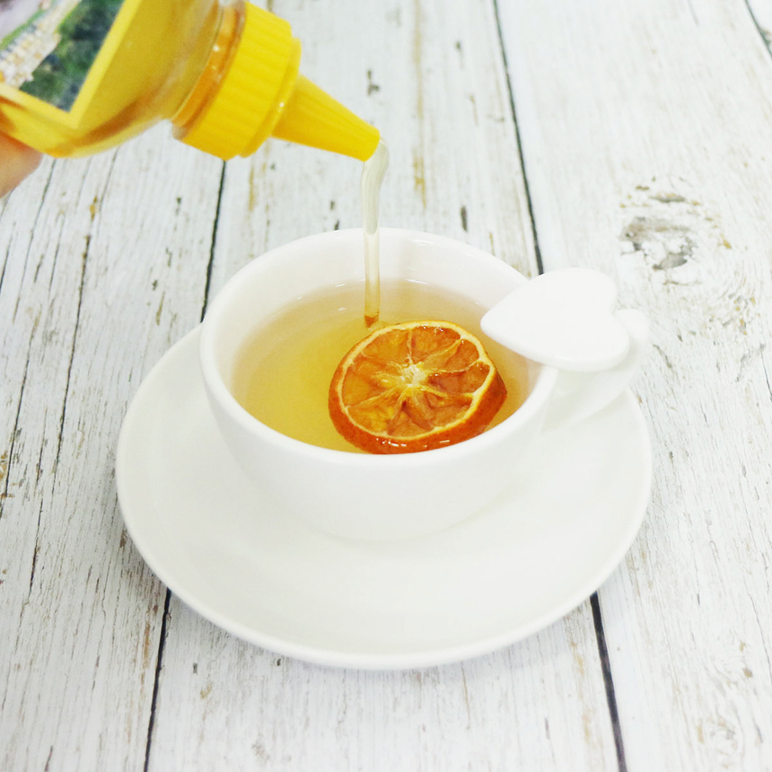 꿀차를 드실 때는 너무 뜨거운 물에 드시지 마세요.