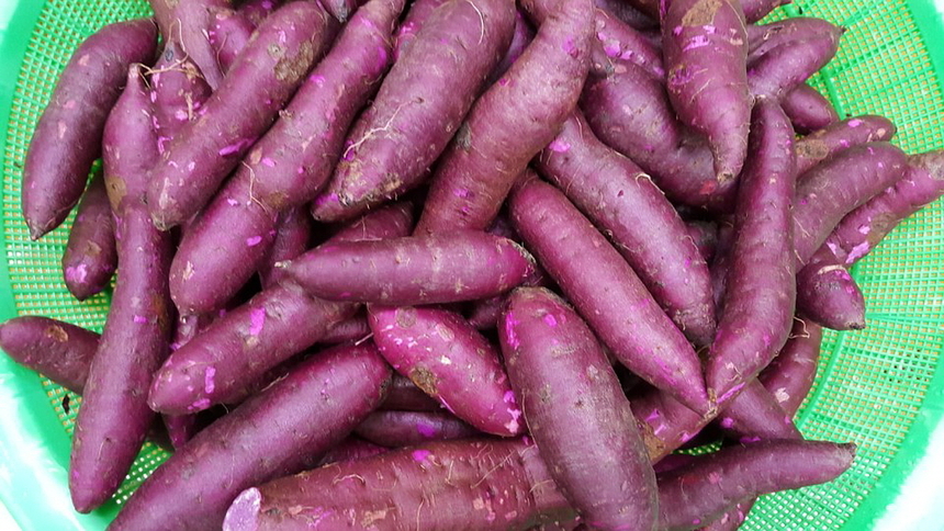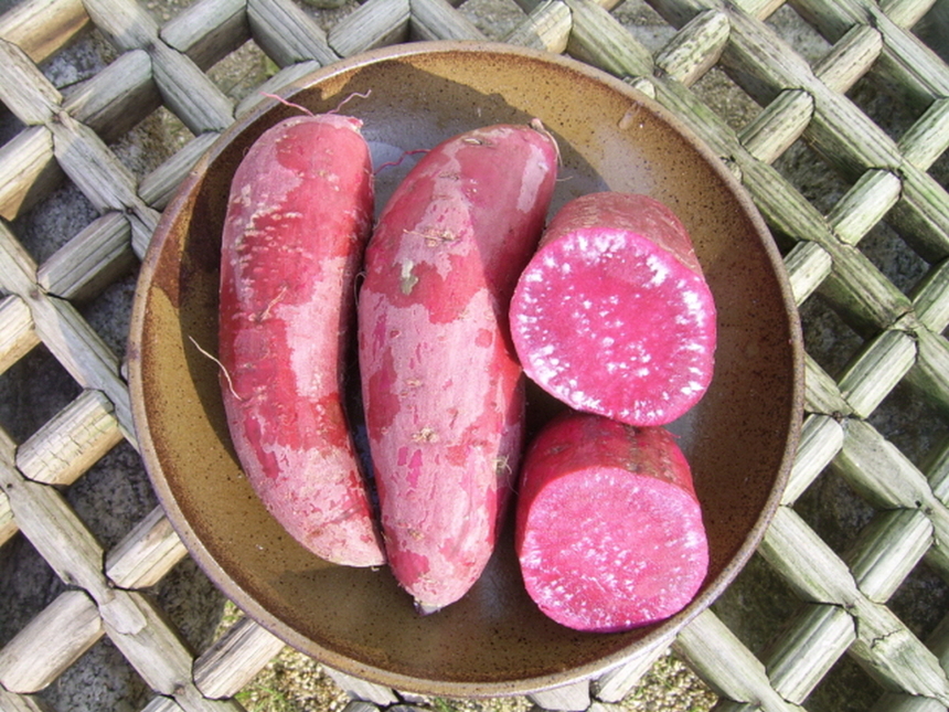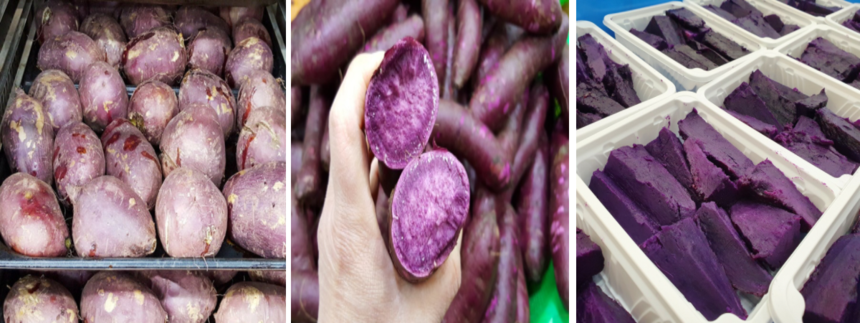 (자색고구마는 익으면 건강한 보랏빛으로 변한답니다. )